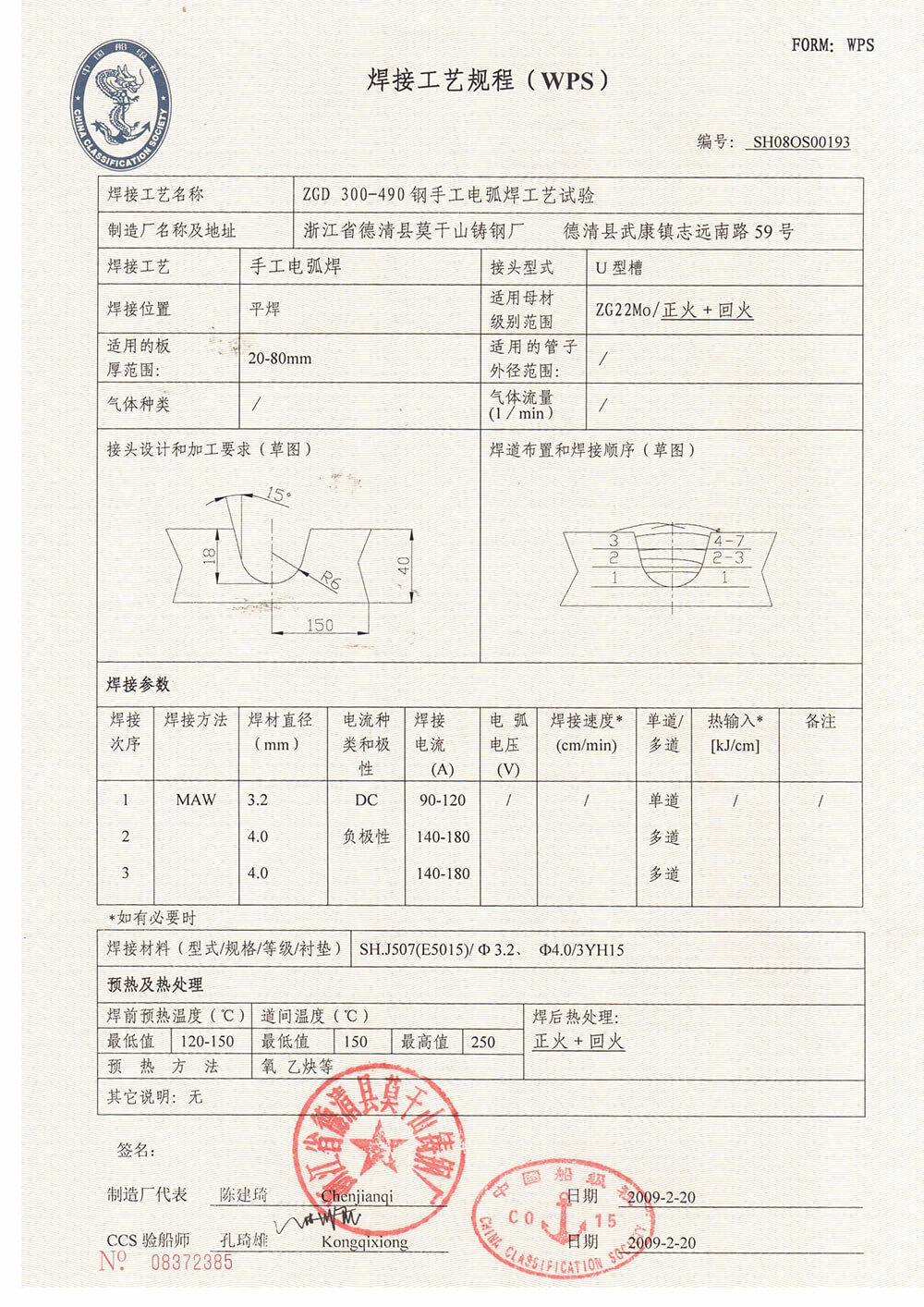 Welding procedure certificate
